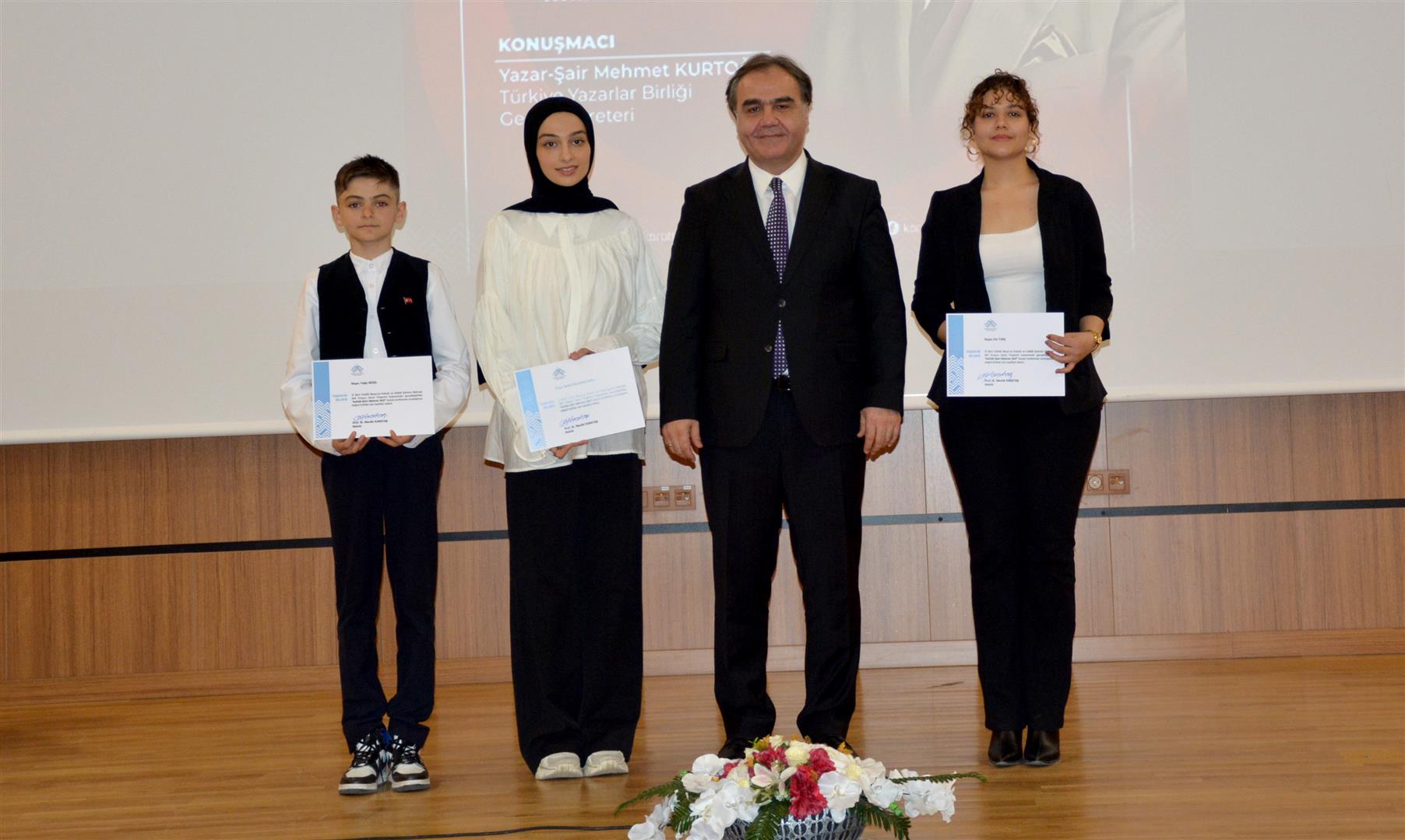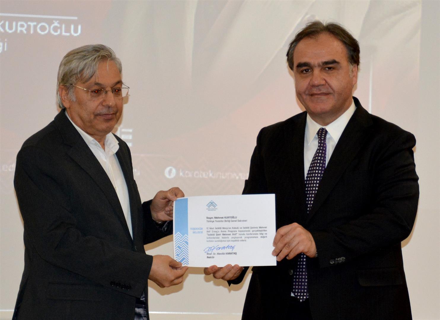 Programın devamında Türkiye Yazarlar Birliği Genel Sekreteri, şair ve yazar Mehmet Kurtoğlu, İstiklal Şairi Mehmet Akif Ersoy’un hayatını anlatan bir sunum gerçekleştirdi.