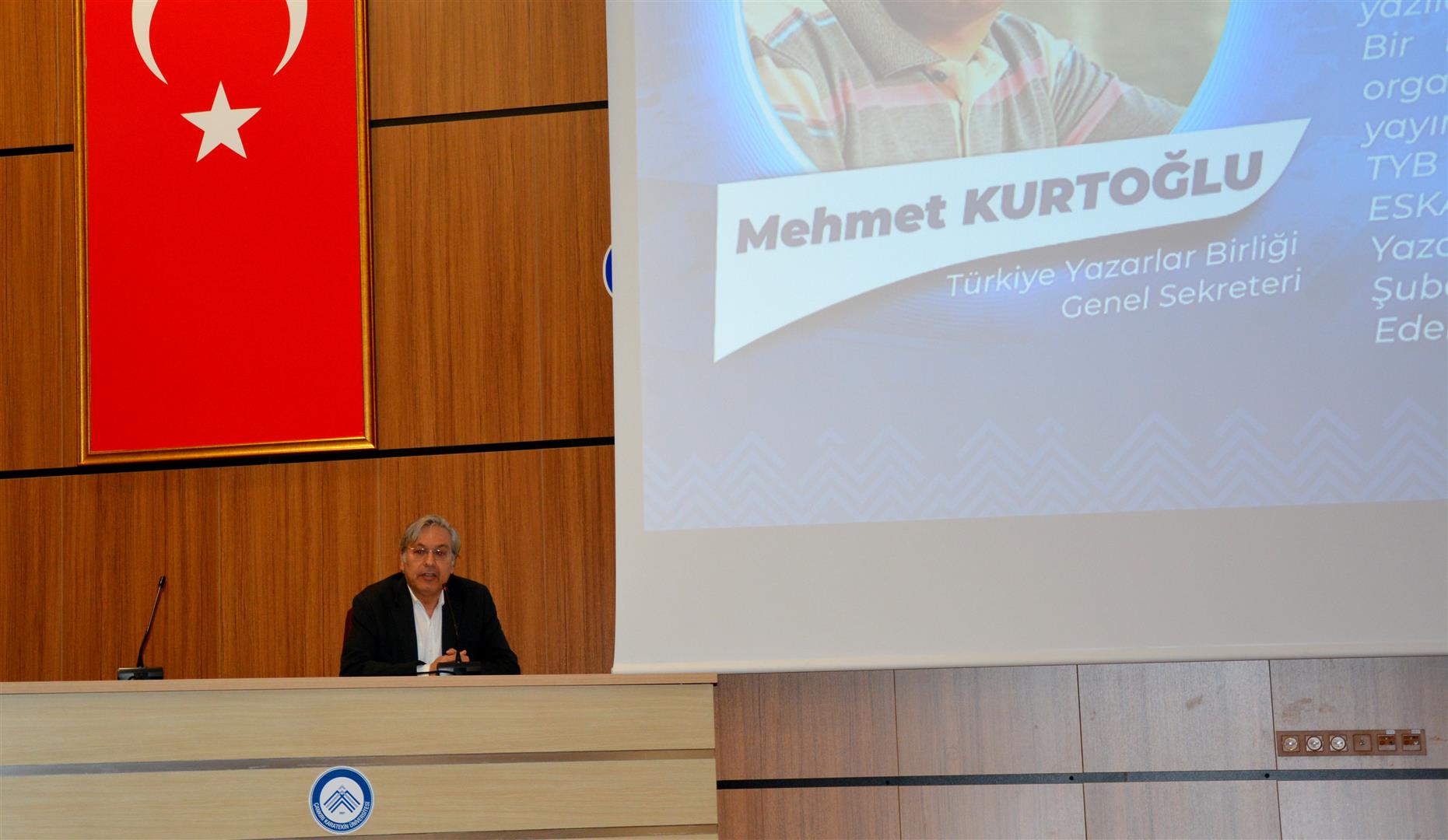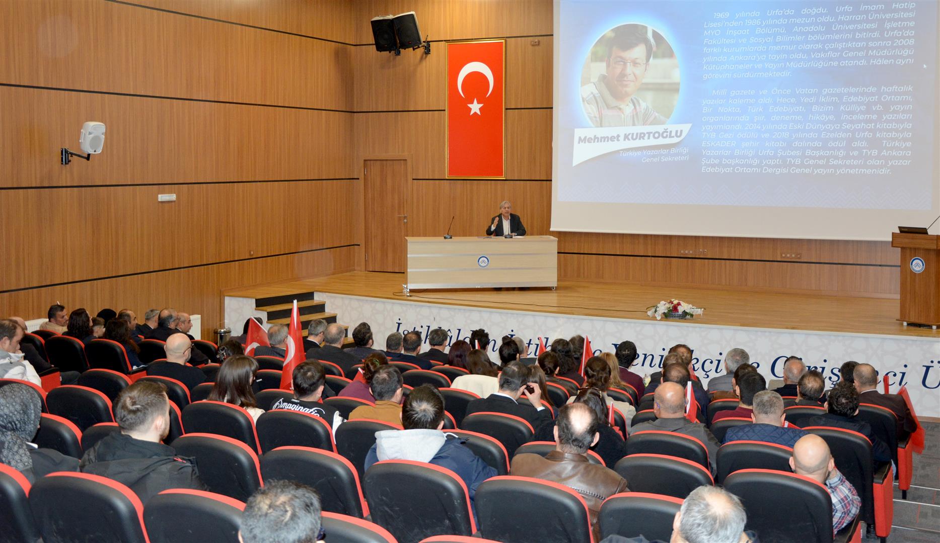 Programda konuşmacı olarak Türkiye Yazarlar Birliği Genel Sekreteri, şair ve yazar Mehmet Kurtoğlu yer aldı.