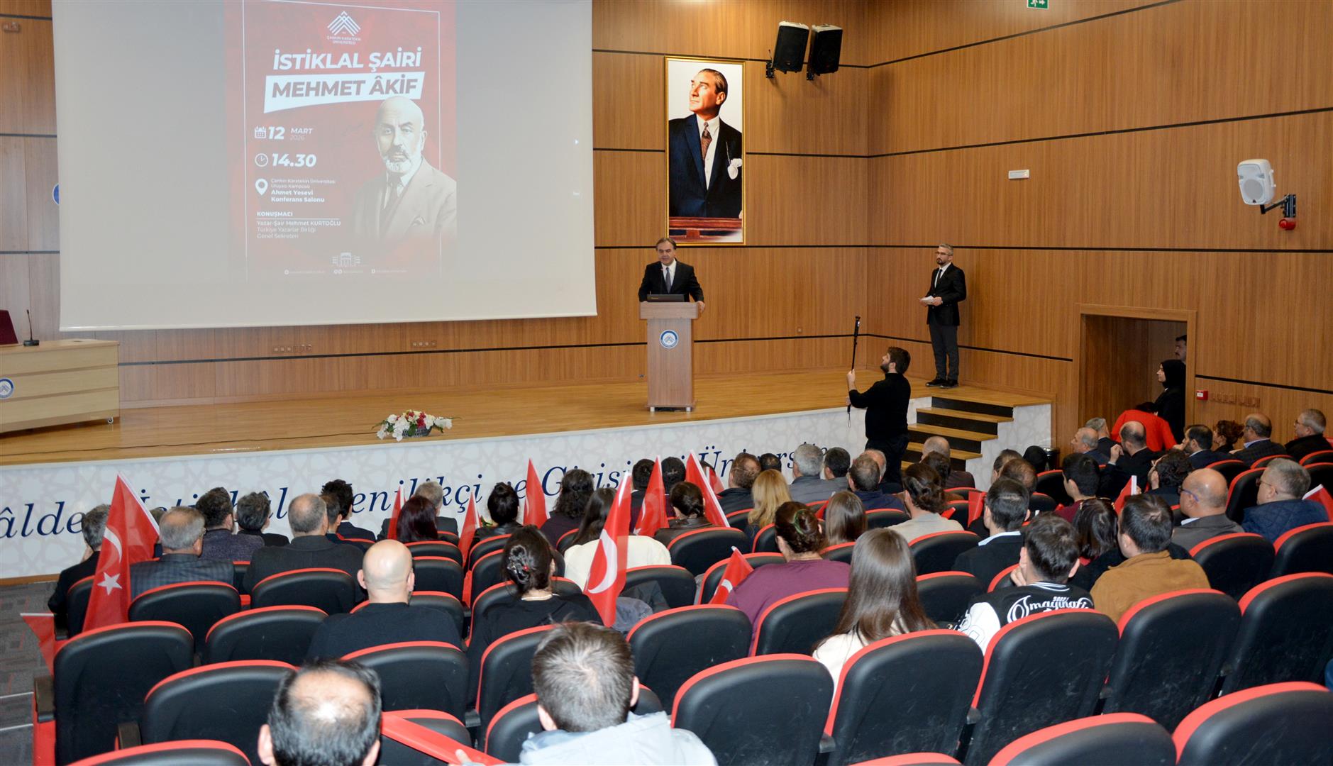 İstiklal Marşı’nın kabulünün 105. yıl dönümü dolayısıyla Çankırı Karatekin Üniversitesi’nde “12 Mart İstiklal Marşı’nın Kabulü ve Millî Şairimiz Mehmet Akif Ersoy’u Anma Programı” düzenlendi.