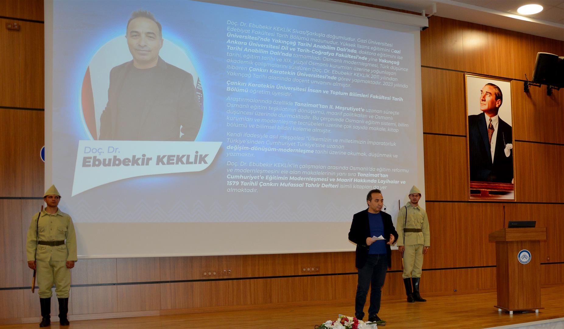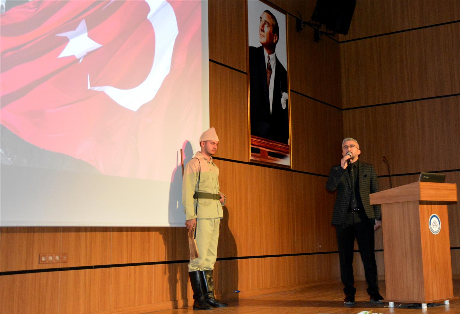 Programın ana bölümünde, İnsan ve Toplum Bilimleri Fakültesi Tarih Bölümü Öğretim Üyesi Doç. Dr. Ebubekir Keklik, “Çanakkale Destanı ve Kuvayı Millîye Ruhu” başlıklı sunumuyla zaferin tarihsel sürecine ilişkin bilgiler paylaştı.
