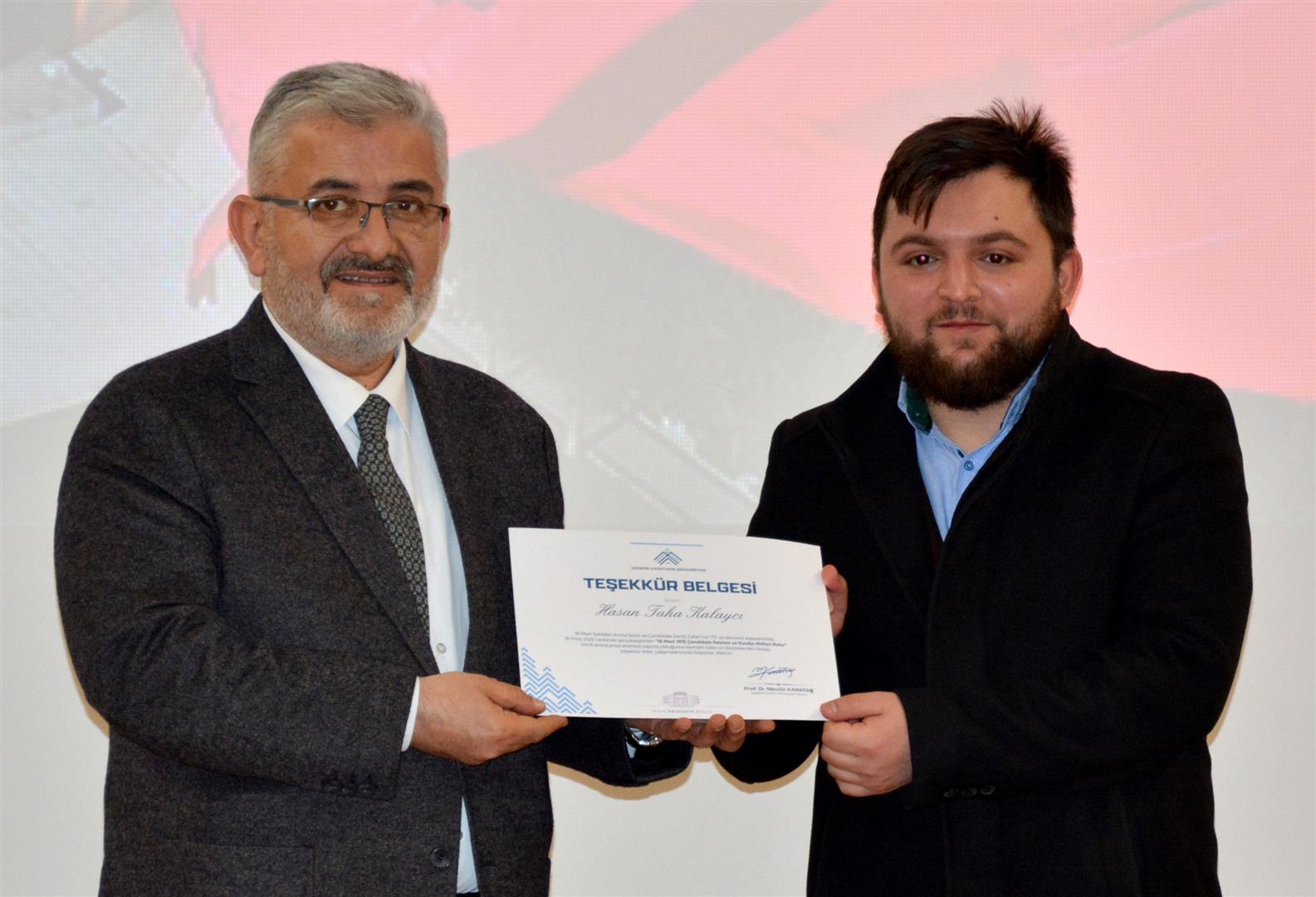 Program kapsamında Çanakkale Zaferi’ni konu alan sinevizyon gösterimi sunuldu. Ardından, ÇAKÜ Sağlık, Kültür ve Spor Daire Başkanlığı personeli Mehmet Can Eroğlu tarafından şehitler anısına naat dinletisi gerçekleştirildi.