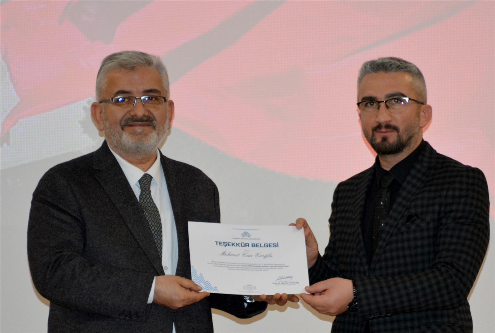 Çankırı Karatekin Üniversitesinde, 18 Mart Şehitleri Anma Günü ve Çanakkale Deniz Zaferi’nin 111. yıl dönümü dolayısıyla Ahmet Yesevi Konferans Salonu’nda anma programı düzenlendi.