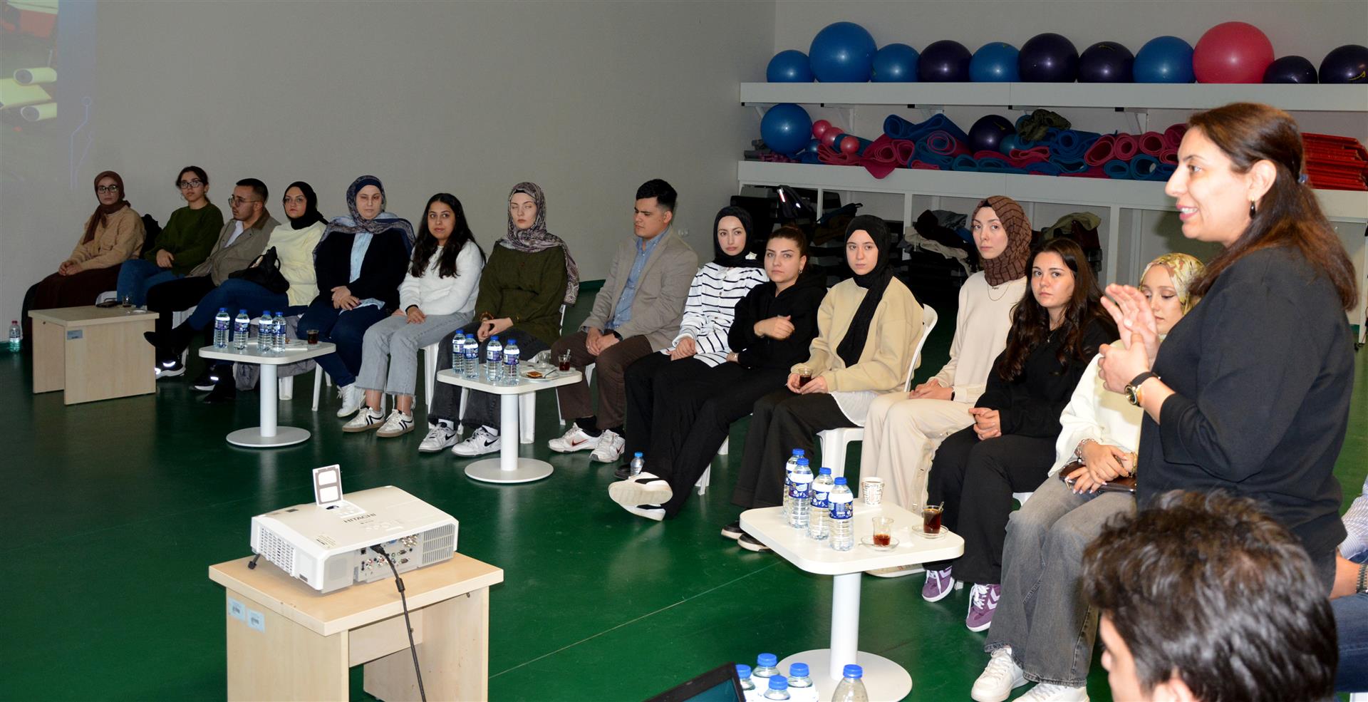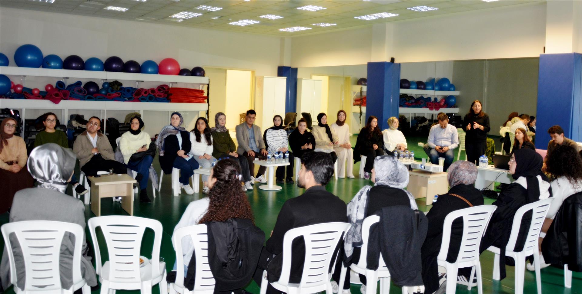 SKS Spor Şube Müdürlüğü Voleybol Antrenörü ve Sosyal Bilimler Meslek Yüksekokulu Öğretim Görevlisi Oğuzhan Acıbunar da kendi deneyimlerinden yola çıkarak voleybol ve basketbol sporları hakkında öğrencilere bilgi verdi.