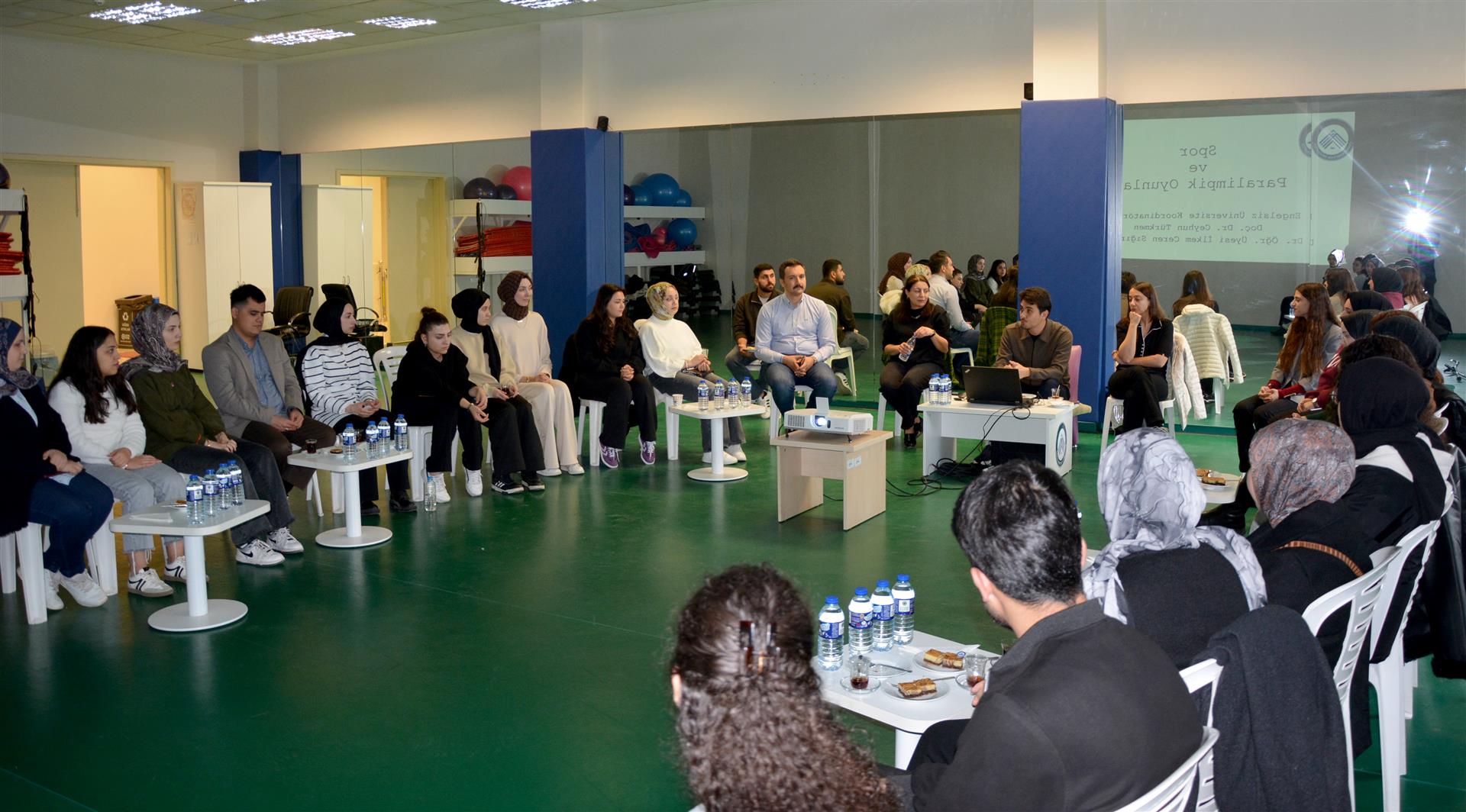 Daha sonra Üniversitemiz Engelsiz Üniversite Koordinatörü Doç. Dr. Ceyhun Türkmen, spor yapmanın fiziksel, ruhsal ve zihinsel faydalarını anlattı. Türkmen, Paralimpik Oyunlar hakkında bilgilendirme yaparak dünyada ve ülkemizde başarı elde eden engelsiz sporcuların örneklerini öğrencilere aktardı.