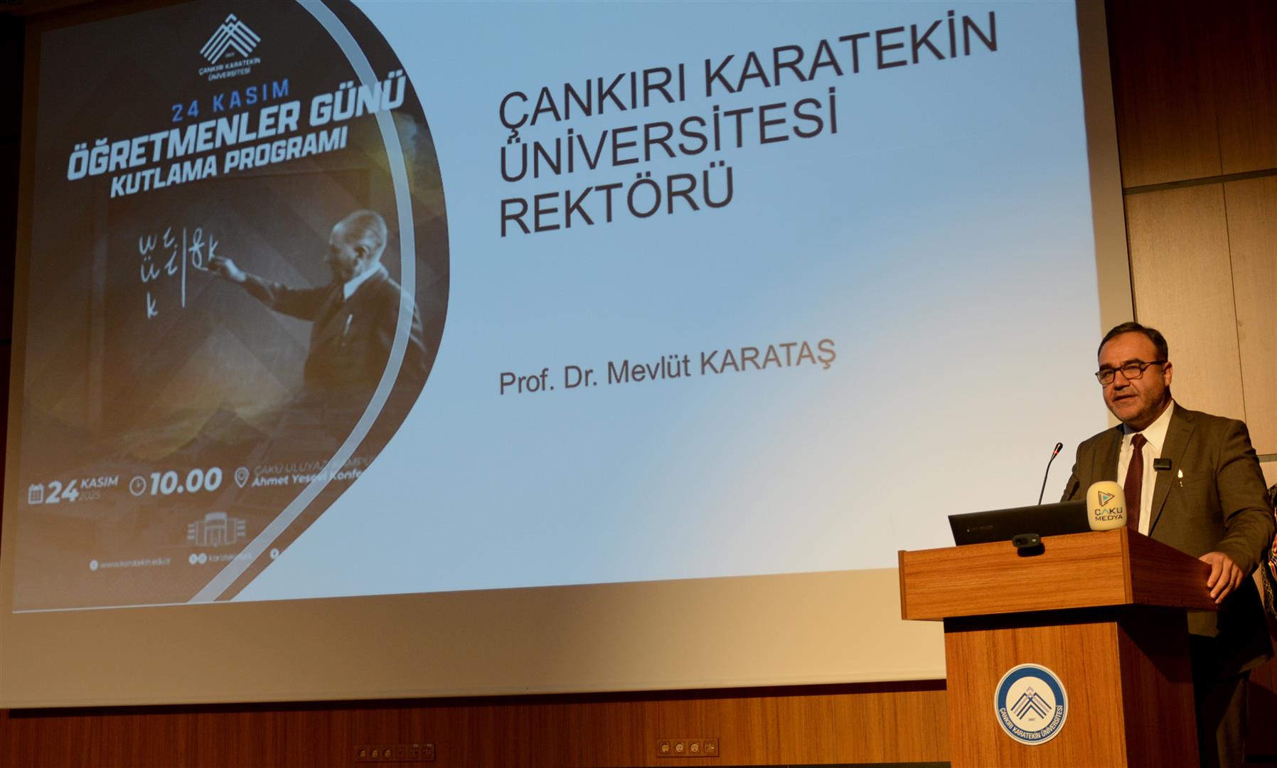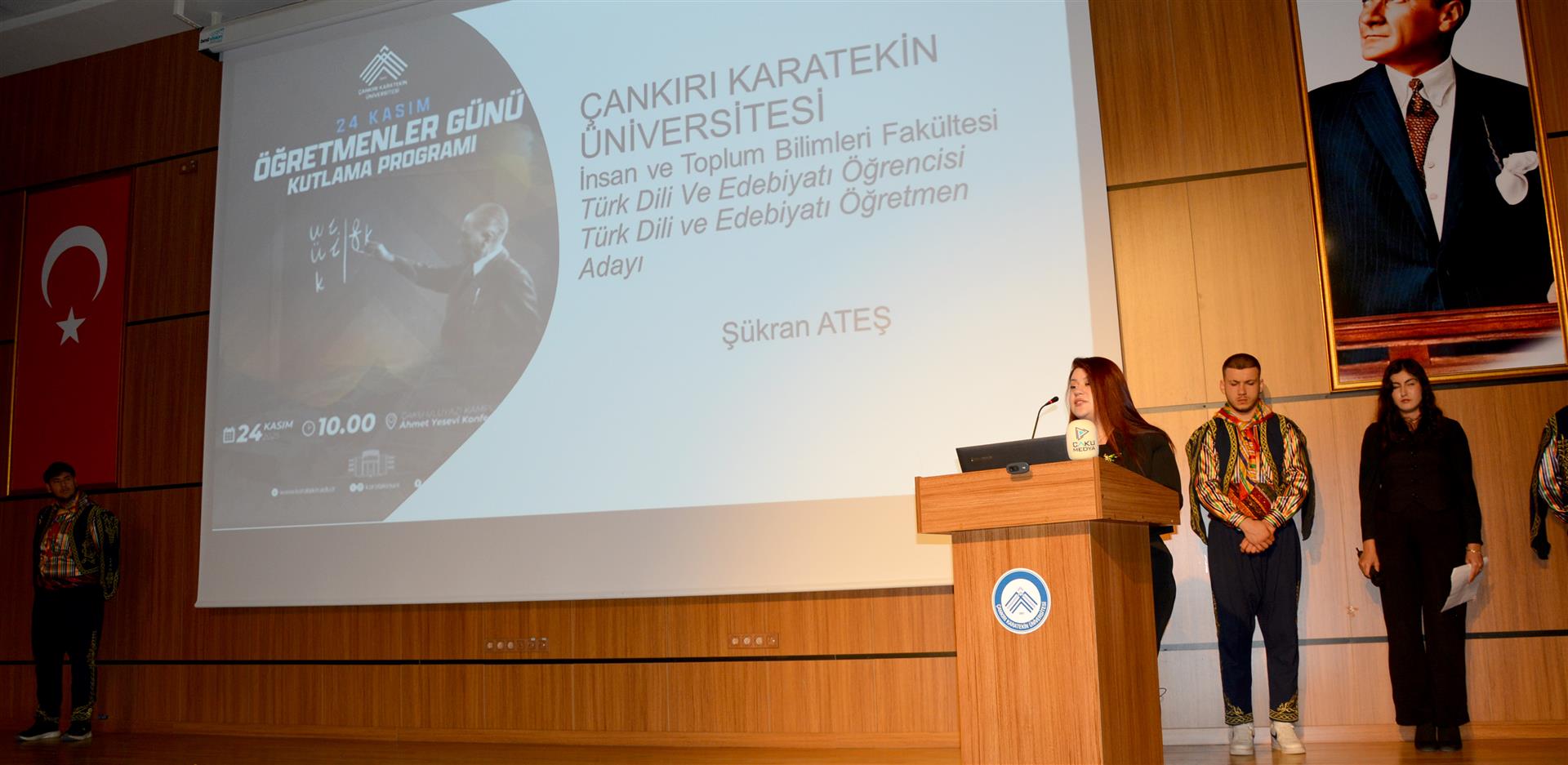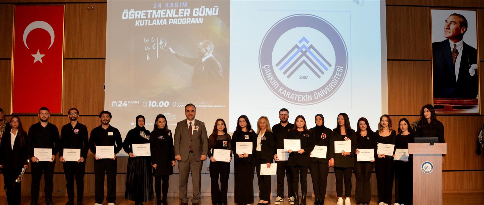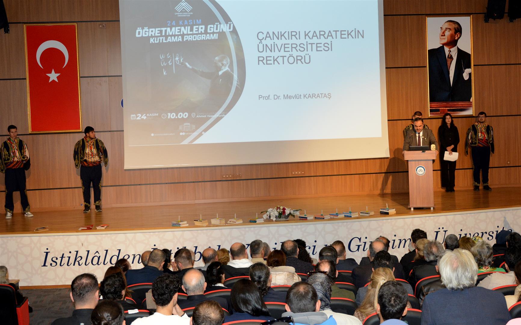 24 Kasım Öğretmenler Günü, Çankırı Karatekin Üniversitesi Ahmet Yesevi Konferans Salonu’nda düzenlenen kapsamlı bir programla kutlandı. Üniversite tarafından her yıl gelenek hâline getirilen etkinlik bu yıl da yoğun bir katılımla gerçekleşti.
