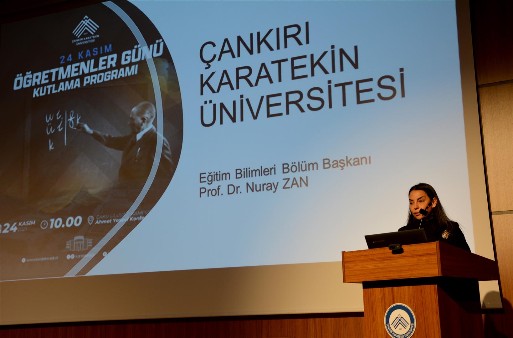 Programın açılış konuşmasını gerçekleştiren Eğitim Bilimleri Bölüm Başkanı Prof. Dr. Nuray Zan, öğretmenlik mesleğinin toplumun geleceğini şekillendirmedeki önemine dikkat çekti. Prof. Dr. Zan, 24 Kasım’ın Gazi Mustafa Kemal Atatürk’ün Başöğretmen unvanını kabul ettiği gün olması dolayısıyla özel bir anlam taşıdığını belirterek tüm öğretmenlere verdikleri emek için teşekkür etti.